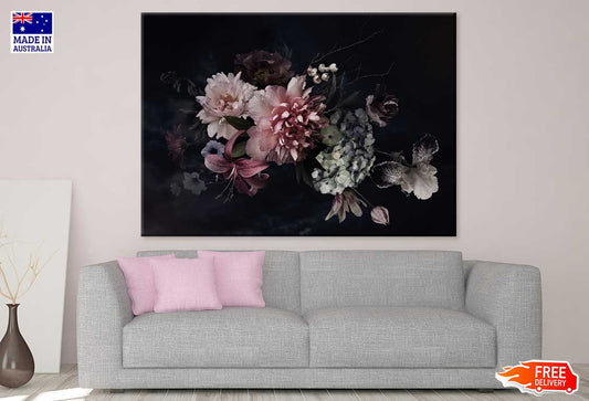 Peony Flowers on Dark Photograph Print 100% Australian Made