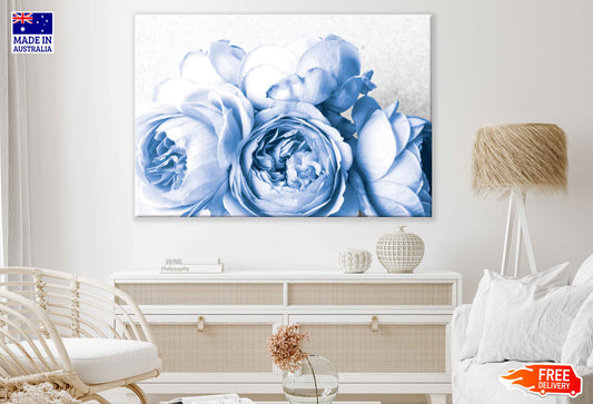 Blue Peony Flowers Closeup View Photograph Print 100% Australian Made
