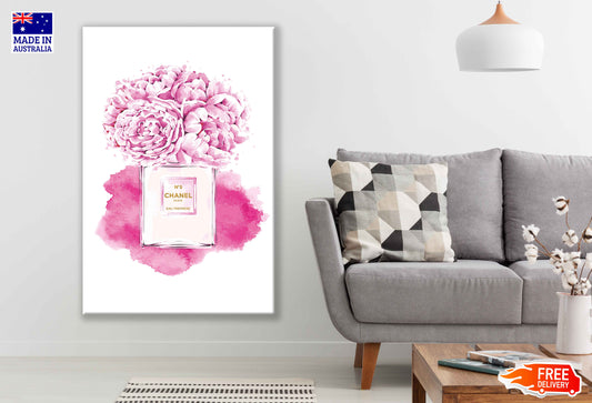 Pink Peony Flowers & Perfume Bottle Watercolor Painting Print 100% Australian Made