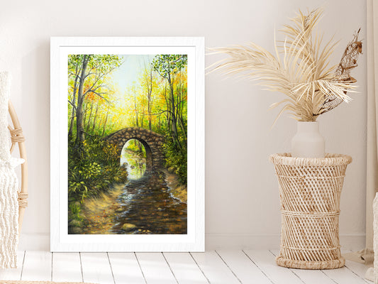 Forest Lake with Bridge Spring Glass Framed Wall Art, Ready to Hang Quality Print