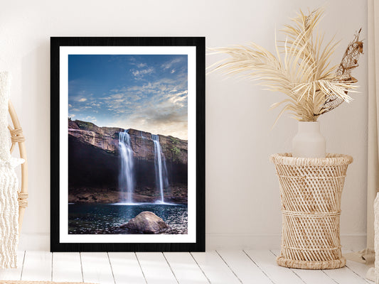 Waterfall Falling From Mountain Glass Framed Wall Art, Ready to Hang Quality Print