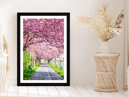 Blooming Pink Cherry Trees Spring Glass Framed Wall Art, Ready to Hang Quality Print