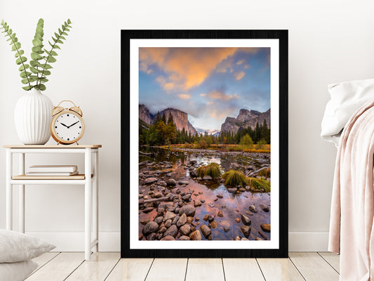 Landscape of Yosemite Park Autumn Glass Framed Wall Art, Ready to Hang Quality Print