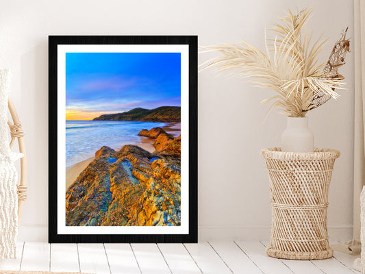 Seascape Sunrise At Burgess Beach Glass Framed Wall Art, Ready to Hang Quality Print