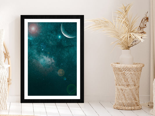 Milky Way Night Sky Clouds & Moon Glass Framed Wall Art, Ready to Hang Quality Print