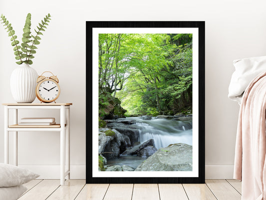 Rocky Riverside With Forest Glass Framed Wall Art, Ready to Hang Quality Print