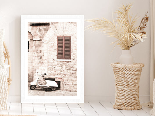 Vintage House Scooter Faded Photograph Glass Framed Wall Art, Ready to Hang Quality Print