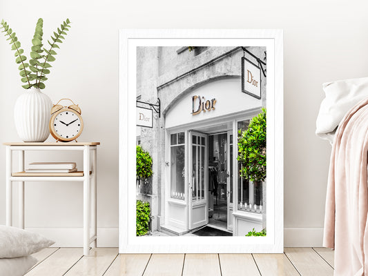 Fashion Store Front & Trees View Photograph Glass Framed Wall Art, Ready to Hang Quality Print