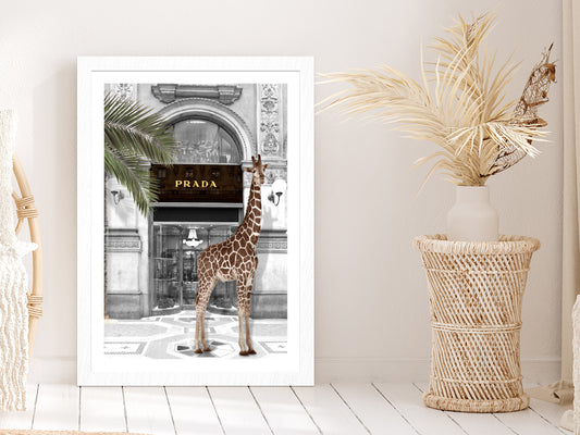 Girrafe near Fashion Store Digital Art Glass Framed Wall Art, Ready to Hang Quality Print
