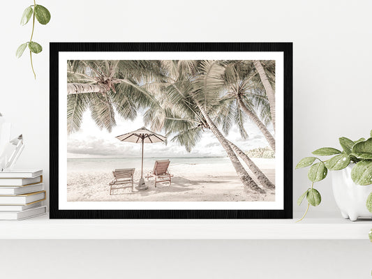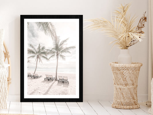 Palm Trees & Beach Chairs near Beach Glass Framed Wall Art, Ready to Hang Quality Print