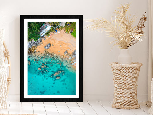 Banana Beach with Palm Trees in Phuket Aerial Photograph Glass Framed Wall Art, Ready to Hang Quality Print