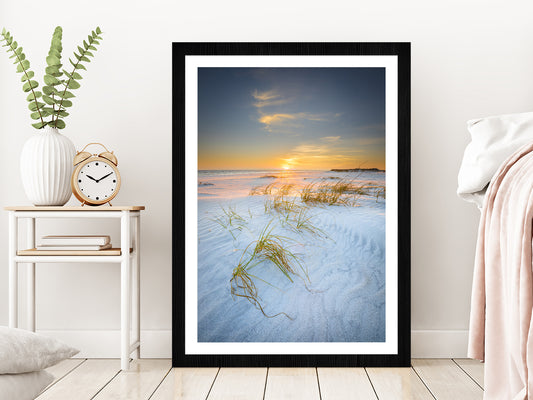 Sandy Sea Dunes in Walton Beach Sunset View Photograph Glass Framed Wall Art, Ready to Hang Quality Print
