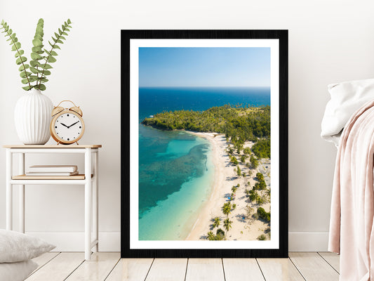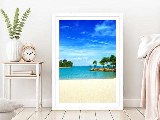 Tropical Secluded Lagoon Beach View Photograph Glass Framed Wall Art, Ready to Hang Quality Print