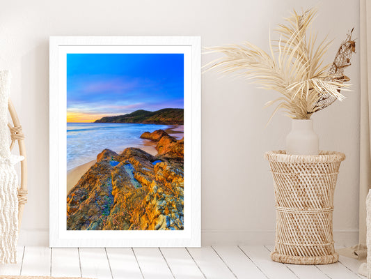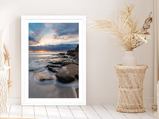 Seascape Sunrise at Burgess Beach Photograph Glass Framed Wall Art, Ready to Hang Quality Print