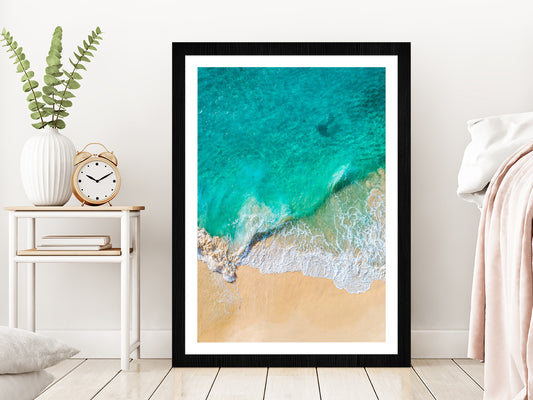 Green Seawaves on Sand Aerial Photograph Glass Framed Wall Art, Ready to Hang Quality Print