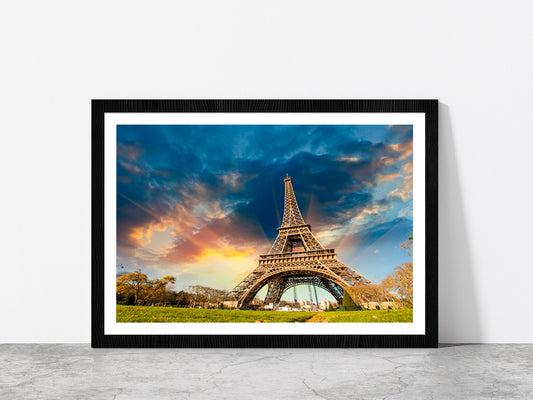 Eiffel Tower In Paris & Sunrise Glass Framed Wall Art, Ready to Hang Quality Print