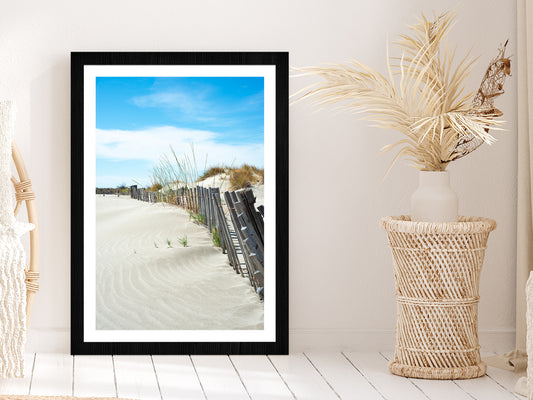 Old Wood Beach Fence near Sand Sea Photograph Glass Framed Wall Art, Ready to Hang Quality Print