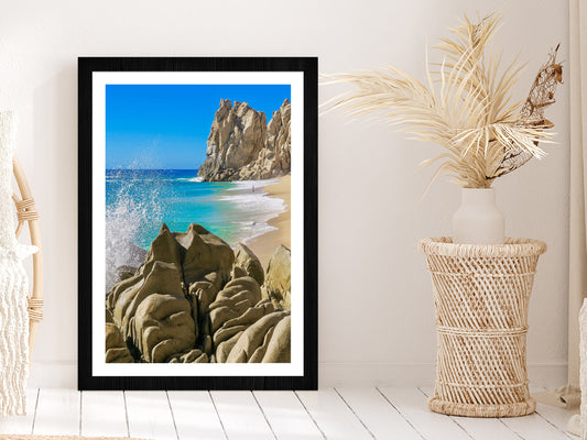 Rocky Beach Photograph Cabo San Lucas Mexico Glass Framed Wall Art, Ready to Hang Quality Print