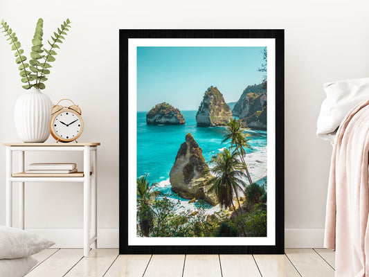 Deserted Beach Photograph Nusa Penida Island Glass Framed Wall Art, Ready to Hang Quality Print