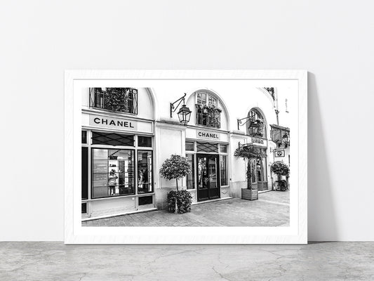B&W Fashion Store in Vittorio Emanuele Glass Framed Wall Art, Ready to Hang Quality Print