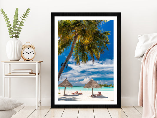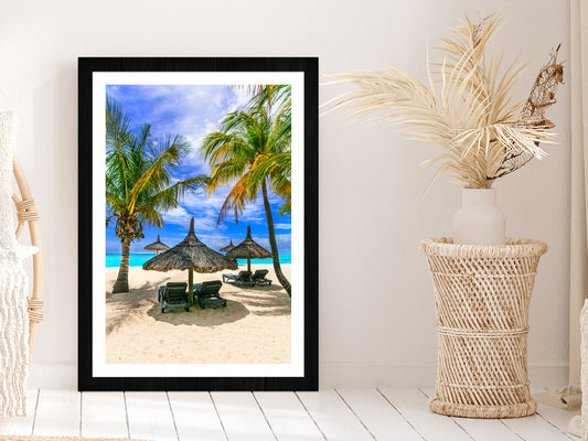 Tropical Palms & Beach Hut at Mauritius Photograph Glass Framed Wall Art, Ready to Hang Quality Print