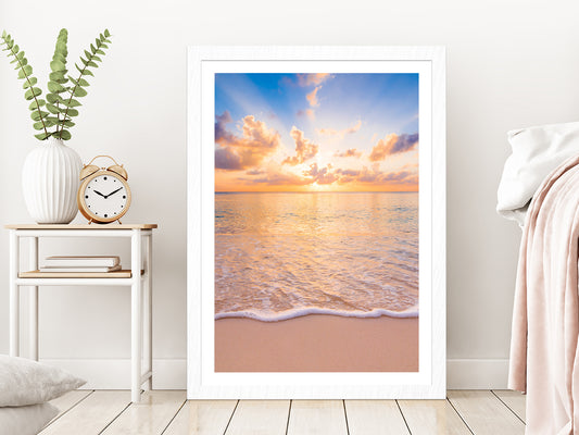 Sunset Sky Beach & Seawaves Photograph Glass Framed Wall Art, Ready to Hang Quality Print