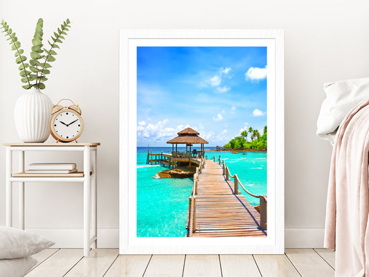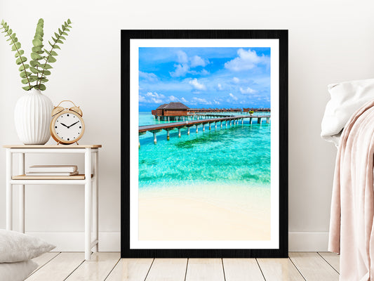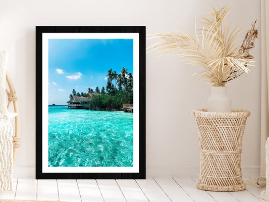 Bungalows Beach Photograph at Maldives Glass Framed Wall Art, Ready to Hang Quality Print