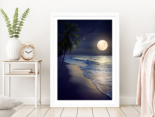 Tropical Beach with Milky Way Moon in Night Photograph Glass Framed Wall Art, Ready to Hang Quality Print