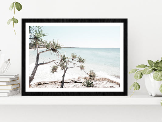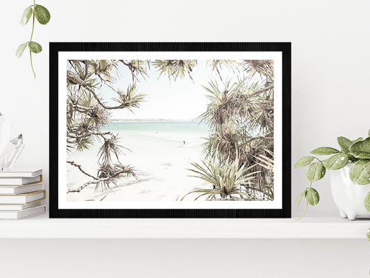 Trees near Surf Beach Faded Photograph Glass Framed Wall Art, Ready to Hang Quality Print