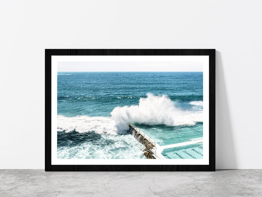 Sea Waves Splash on Beach Pool Photograph Glass Framed Wall Art, Ready to Hang Quality Print