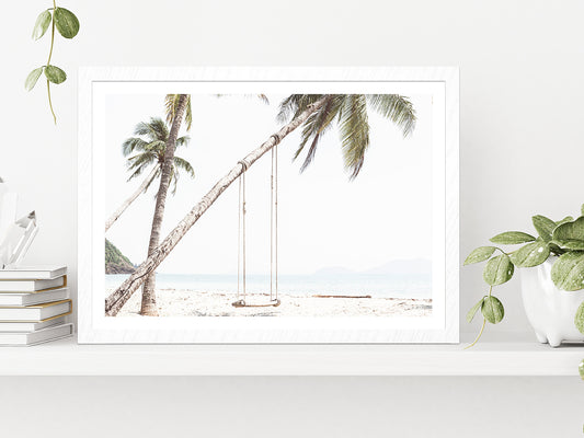 Swing on Beach & Palm Tree Faded Photograph Glass Framed Wall Art, Ready to Hang Quality Print