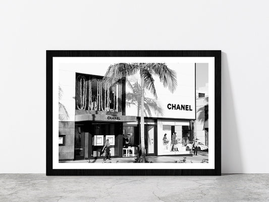Palm Tree & People near Fashion Store Photograph Glass Framed Wall Art, Ready to Hang Quality Print