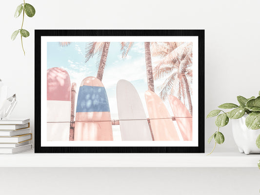 Surf Boards & Palm Trees Beach Faded Photograph Glass Framed Wall Art, Ready to Hang Quality Print