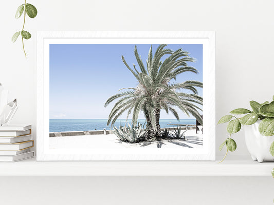 Palm Tree near Beach & Blue Sky Photograph Glass Framed Wall Art, Ready to Hang Quality Print