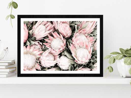 Protea Flowers Closeup Faded Photograph Glass Framed Wall Art, Ready to Hang Quality Print