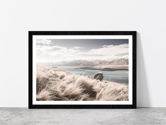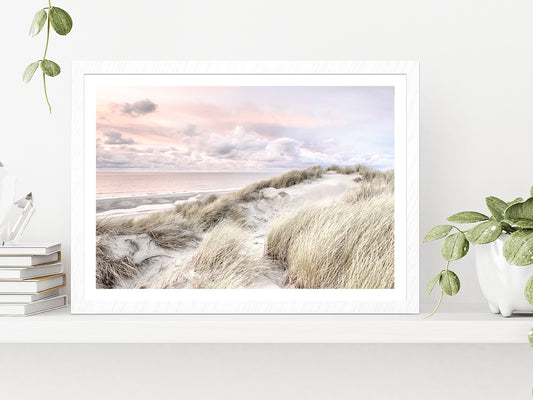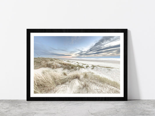 Sand Dunes near Beach & Mountains Photograph Glass Framed Wall Art, Ready to Hang Quality Print