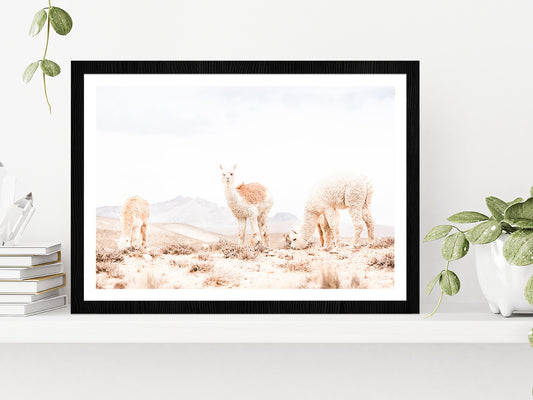 Llama Herd on Landscape Faded View Photograph Glass Framed Wall Art, Ready to Hang Quality Print