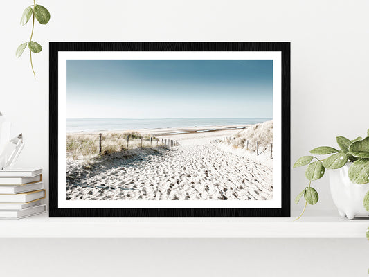 Sandy Path to Sea & Blue Sky Faded Photograph Glass Framed Wall Art, Ready to Hang Quality Print
