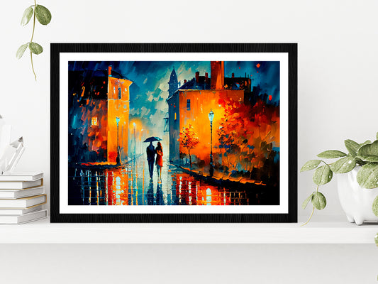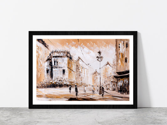 Street View Of Cityscape With Couple Glass Framed Wall Art, Ready to Hang Quality Print