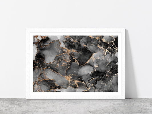 Alcohol Ink Grey & Gold Abstract Glass Framed Wall Art, Ready to Hang Quality Print