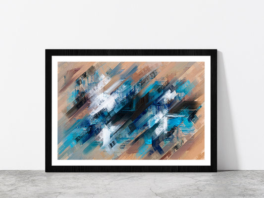 Abstract Diagonal Paint Strokes Glass Framed Wall Art, Ready to Hang Quality Print