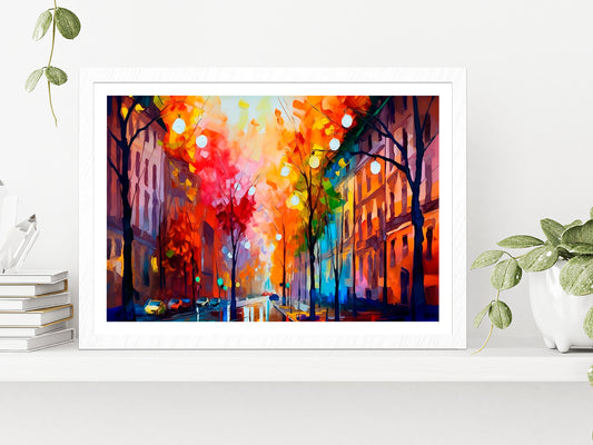 City In Autumn, Scenic Landscape With A Pleasant Trees Glass Framed Wall Art, Ready to Hang Quality Print