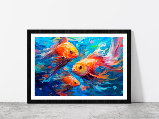 Underwater World With Beautiful Fishes Glass Framed Wall Art, Ready to Hang Quality Print