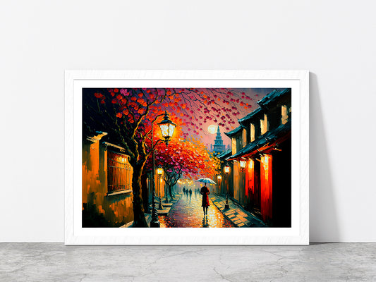 Ancient City Street In Japan During Spring Season Glass Framed Wall Art, Ready to Hang Quality Print