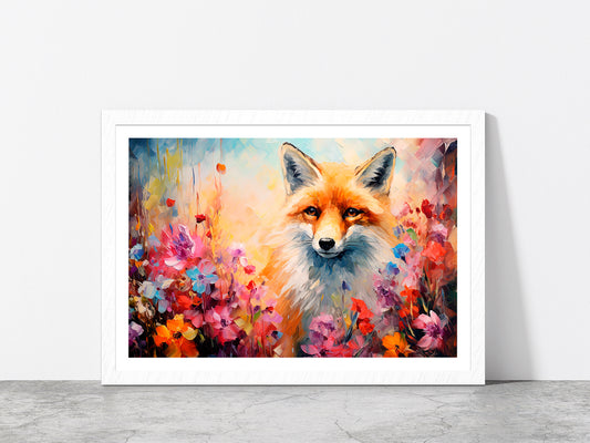 Fox In Flower Blossom Atmosphere Golden Colorful Glass Framed Wall Art, Ready to Hang Quality Print