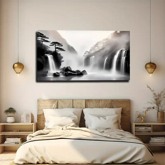 Serene Waterfall Mountain Wall Art Canvas Office Home Room Framed 120x60cm