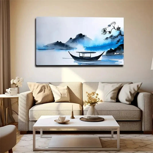Poetic Boat Watercolor Wall Art Canvas Office Home Room Framed 120x60cm