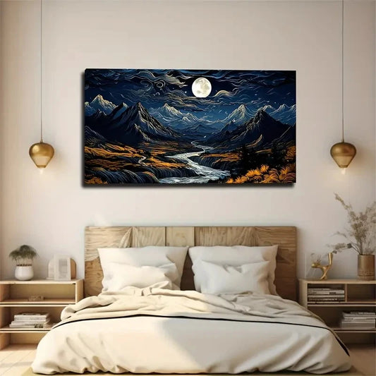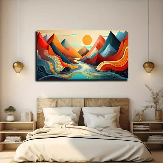 Vibrant Abstract Mountain Wall Art Canvas Office Home Room Framed 120x60cm