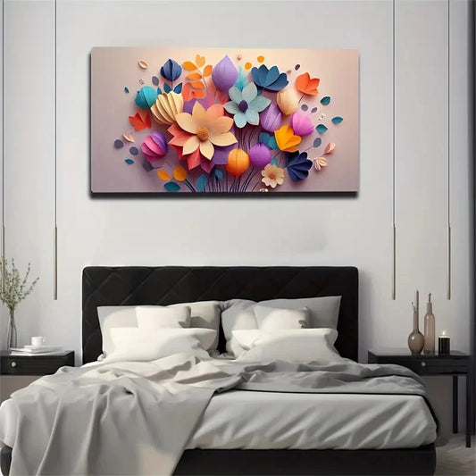 Vibrant 3D Flower Wall Art Canvas Office Home Room Framed 120x60cm