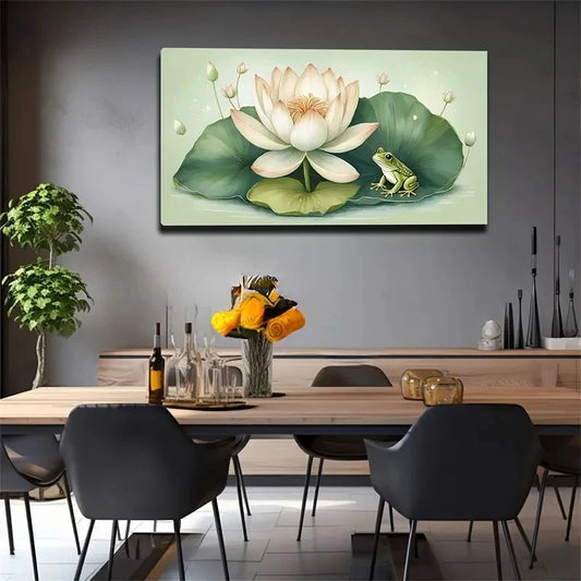 Lotus & Frog Wall Art Canvas Office Home Room Framed 120x60cm